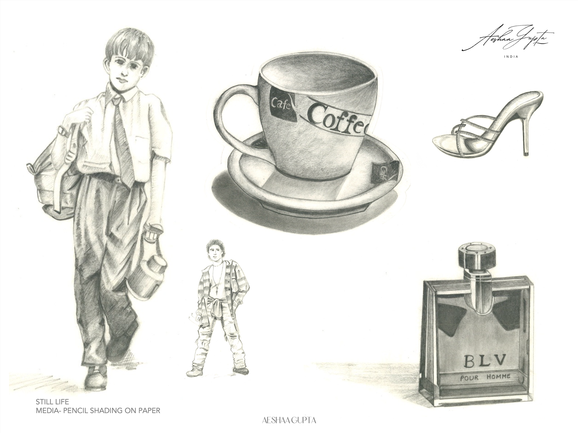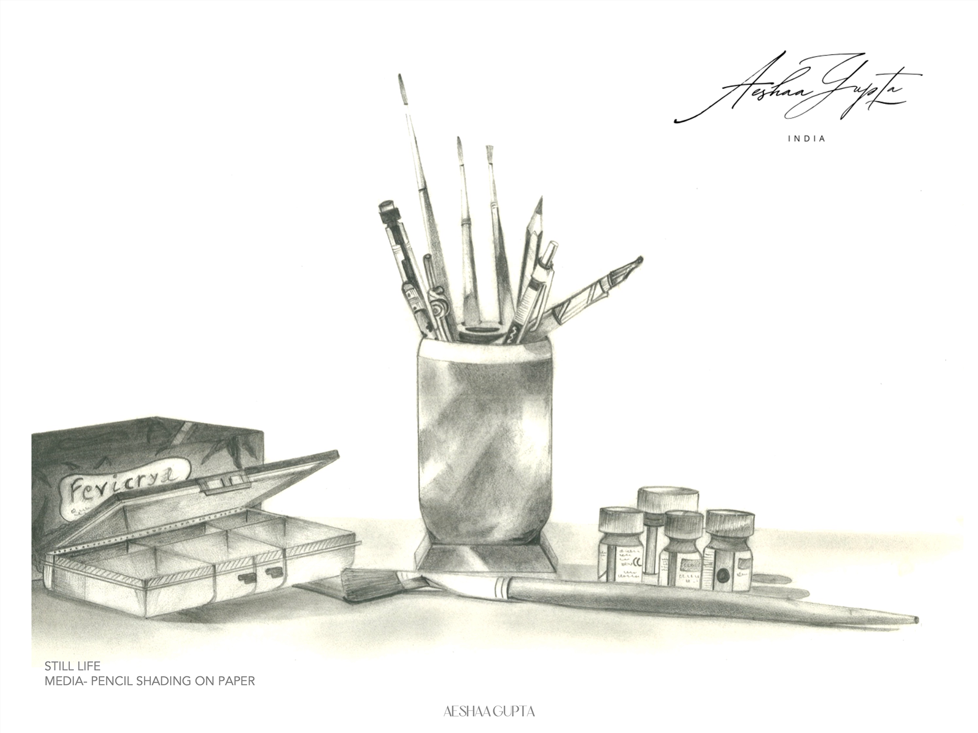 Acrylic on Canvas; Glass painting; Watercolour on Hand-made Paper; Dry Pastels on Ivory paper; Alcohol markers on paper, etc.