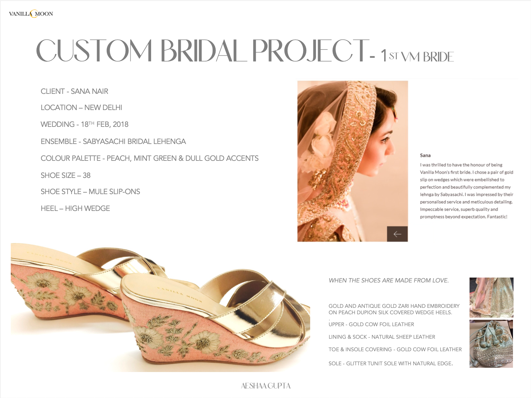 Designing shoes for somebody's wedding is so enriching an experience. From finding the perfect shade to the texture, the aesthetics, to the feel of it. All the way complimenting her @sabyasachiofficial trousseau. The whole process was a rigmarole of emotions and perfection and yet the best of it.